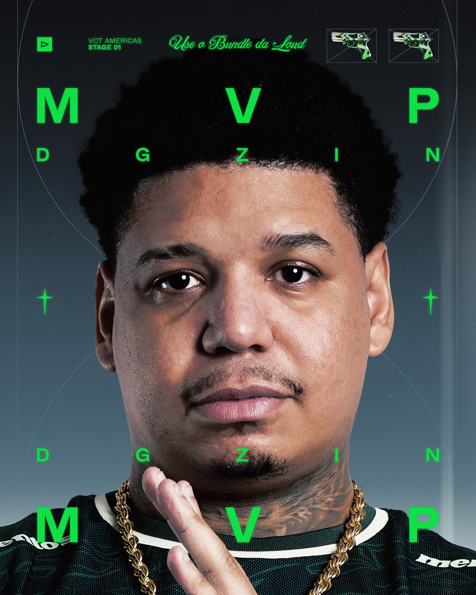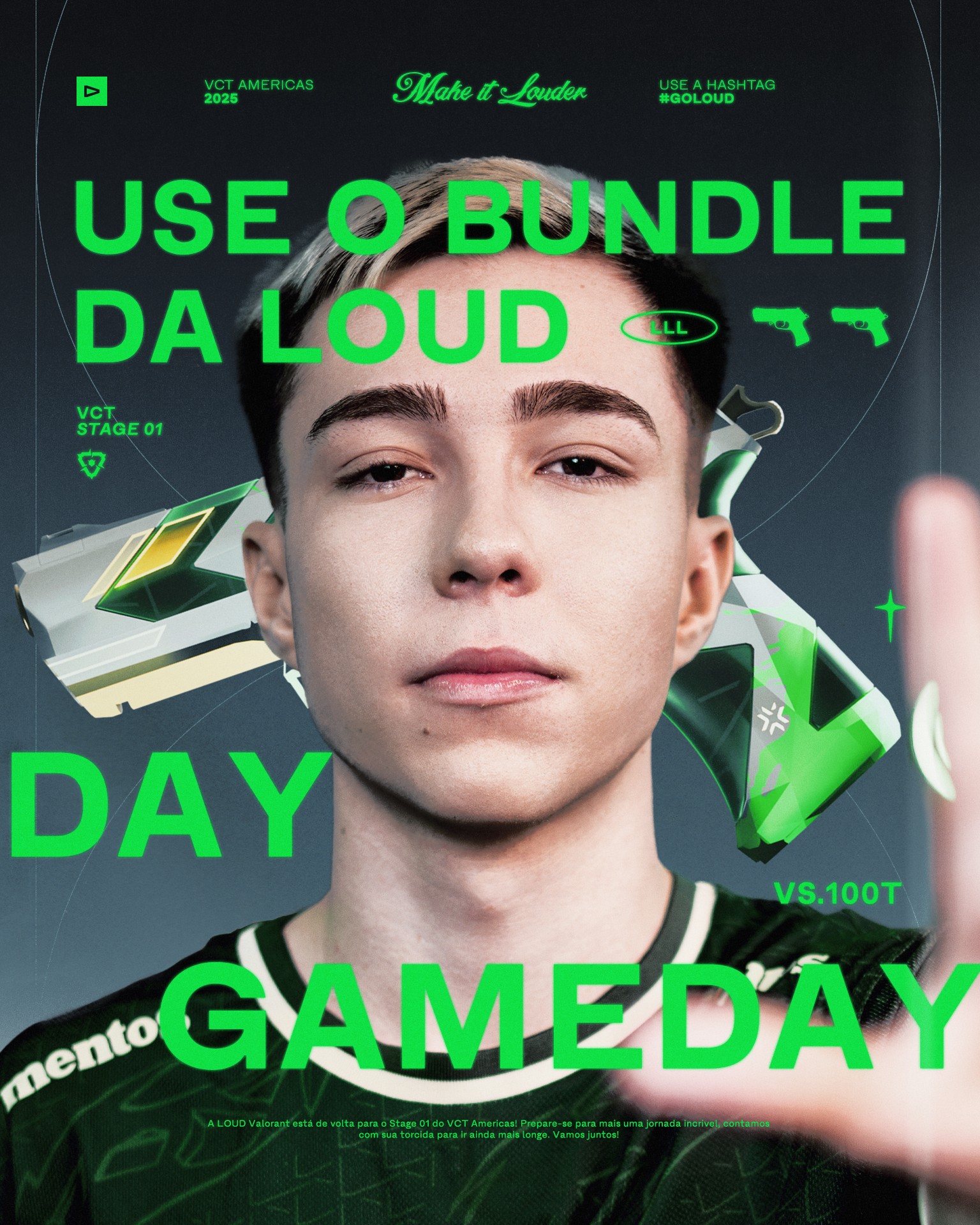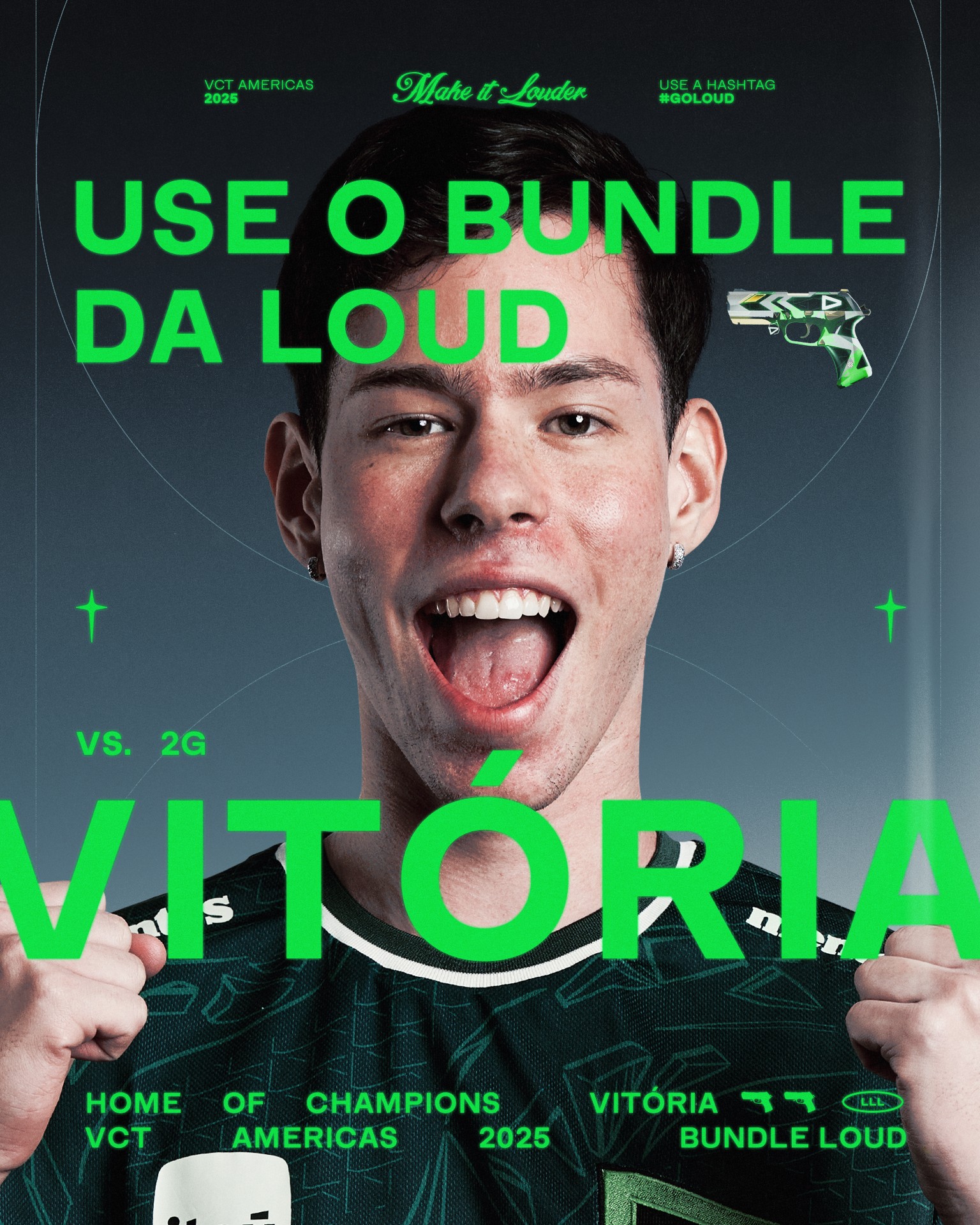 After Kickoff, Stage 1 needed to feel native to VALORANT while still reading as LOUD. One focus was promoting the in game skins bundle, so we built a 3D version of the skin as a reusable asset to keep it consistent and desirable across the full set of pieces.
