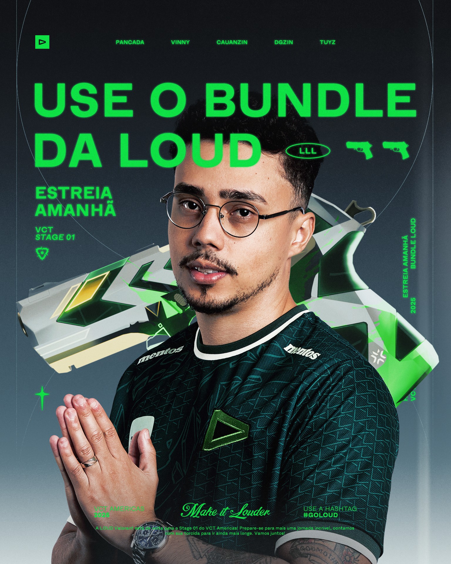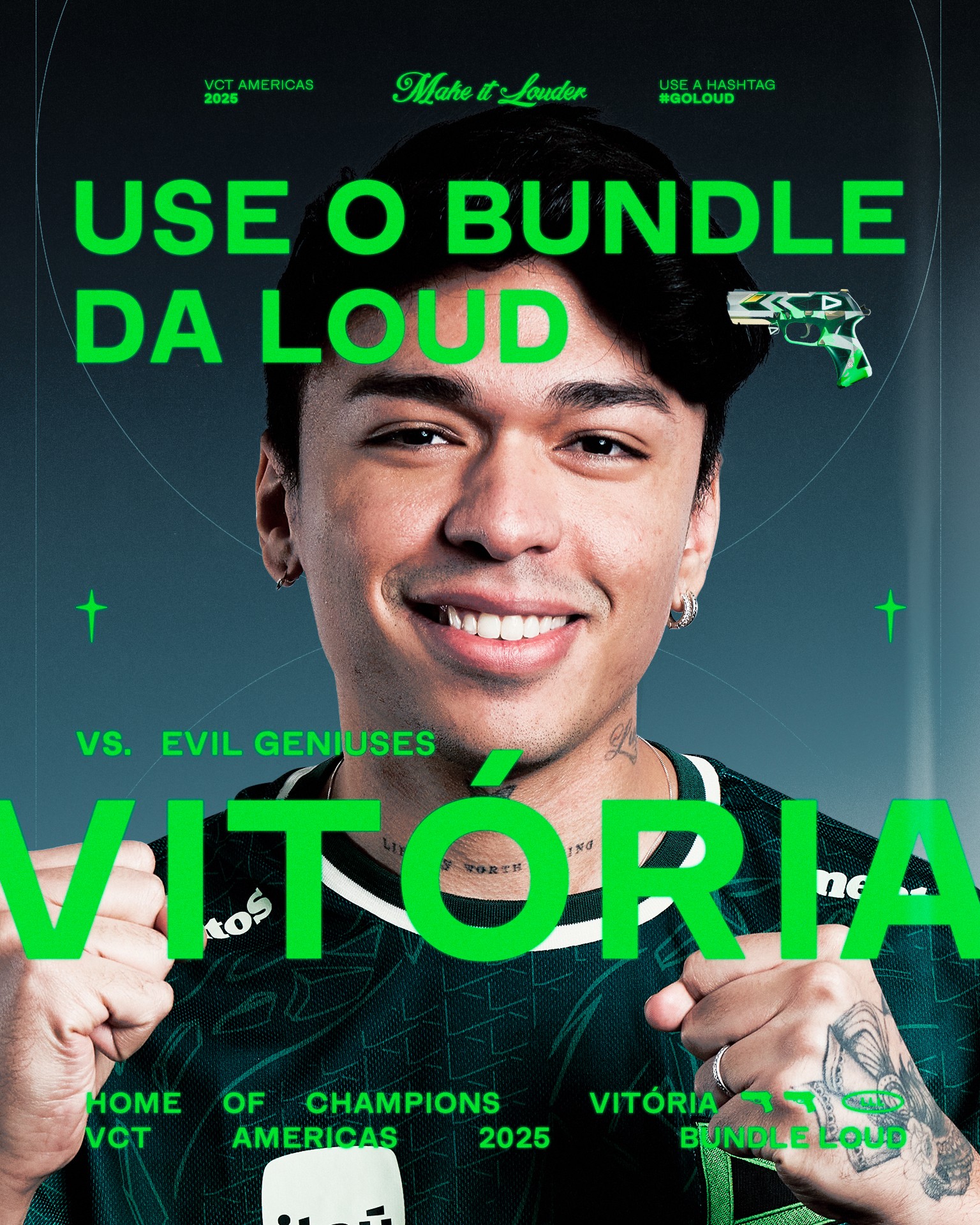 Working with LOUD meant designing for one of the most followed esports brands in Brazil, with a fanbase that moves fast and expects a lot. Across their main channels, that’s 36.8M followers combined, with 11.4M only on Instagram. I helped deliver visuals across multiple games and events, moving between image editing, key visuals, print, merch, and light branding depending on the campaign.